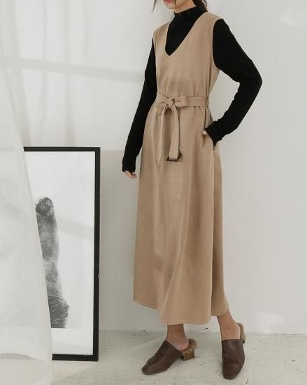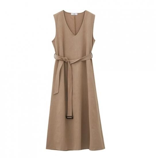 ワンピース 大きいサイズ ゆったり Vネックリボンベルトロングワンピース 春ワンピース 新作ワンピース トレンド ベストワンピース ロングワンピース ウエストマーク 韓国デザイン