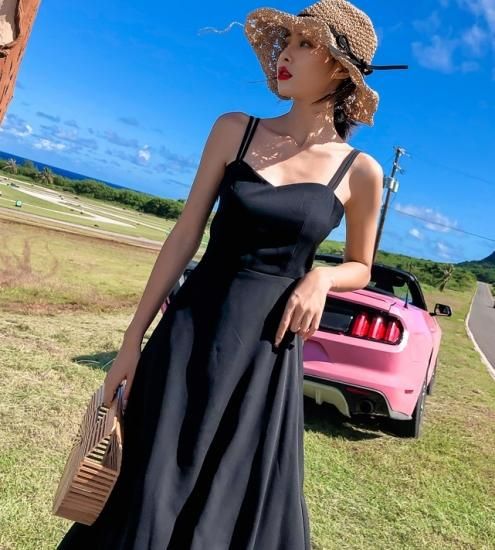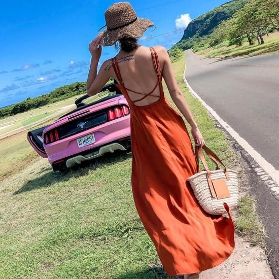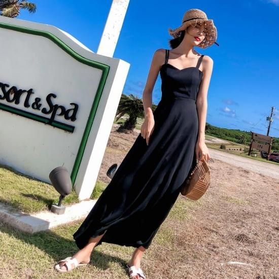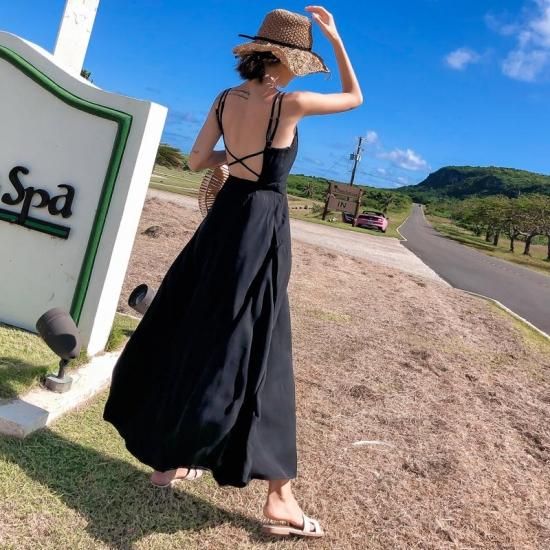 ロングワンピース 大きいサイズ 春新作 春物 春服 ロングワンピース ゆったり バックコンシャス ロングリゾート S.M.L 2色 マキシ丈 トレンド 新作 韓国ファッション オルチャン