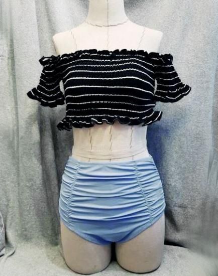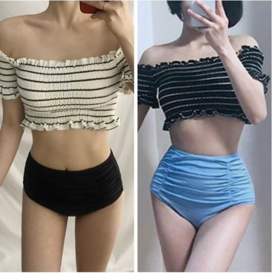 水着 レディース バンドゥ ビキニ 大きいサイズ ボーダー柄 セット水着 夏新作 大人可愛い オフショル チューブトップ セクシー 水着 レディース バンドゥ ビキニ 大きいサイズ ボーダー柄 水着