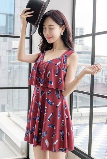 水着 ワンピース 体型カバー ワンピース水着 オールインワン 水着 ワンピース 40代 大きいサイズ 4XL 水着 レディース ママ 可愛い 夏 新作 選べるカラー プリント フレア スカート水着
