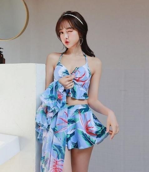 水着 体型カバー ビキニ 3点セット カバーアップ 付き セクシー 大きいサイズ 4XL レディース ママ 夏 新作 リゾート 温泉 スカート タンキニ 3角ビキニ フリル ボタニカル セット水着