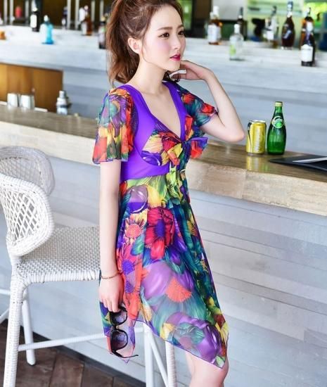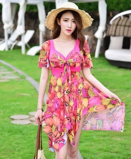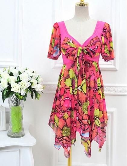 水着 ワンピース 体型カバー ワンピース水着 オールインワン 水着 ワンピース 40代 ママ 大きいサイズ 4XL 水着 レディース 可愛い ぽっちゃり 夏 新作 プリント Vネック 半袖 スカート