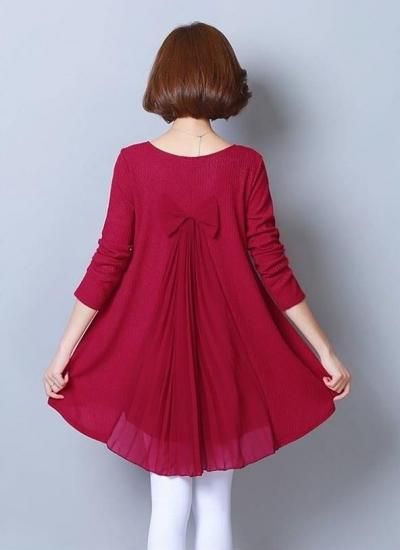 ワンピース ワンピ レディース ミニ丈 ショート丈 大きいサイズ ラウンドネック 長袖 Aライン チュニック ワンピース ワンピ バックリボン 秋冬新作 秋 秋色 秋服 秋sale ワンピース ワンピ