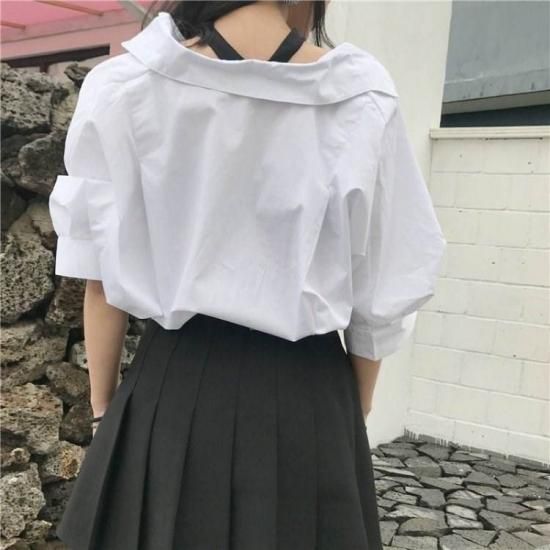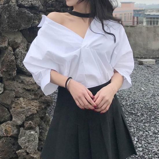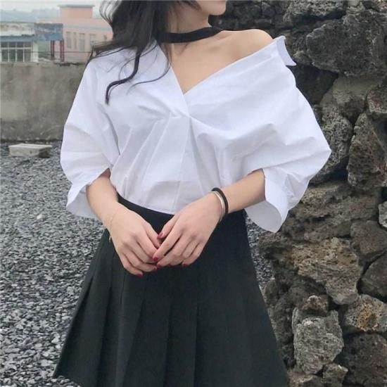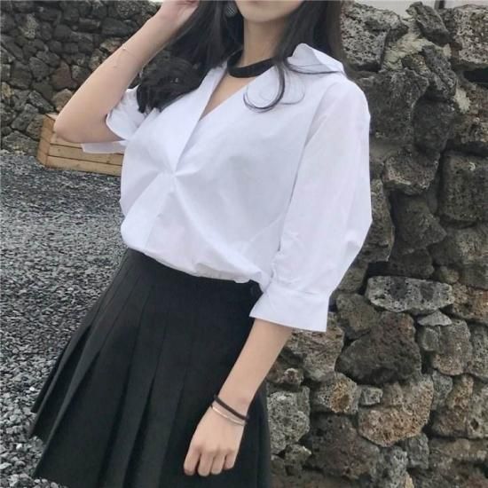 【取寄】シャツ スキッパー トップス レディース 長袖 大きいサイズ ブラウス シャツブラウス オフィス Vネック シンプル 無地 秋冬新作 秋物 秋服 秋 ゆったり