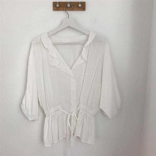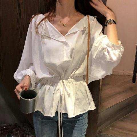 ブラウス フリル トップス レディース 長袖 大きいサイズ ブラウス シャツブラウス オフィス Vネック シンプル 無地 秋冬新作 秋物 秋服 秋 ゆったり ぽっちゃり
