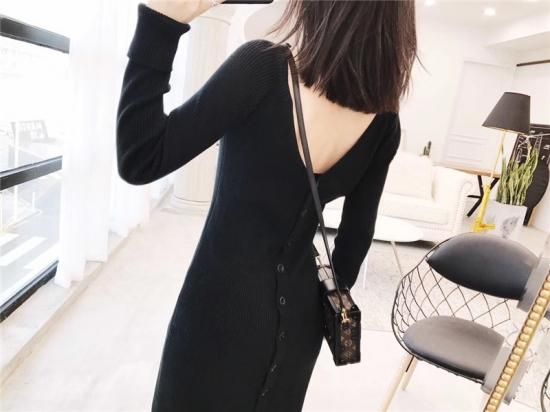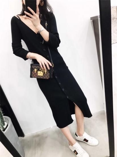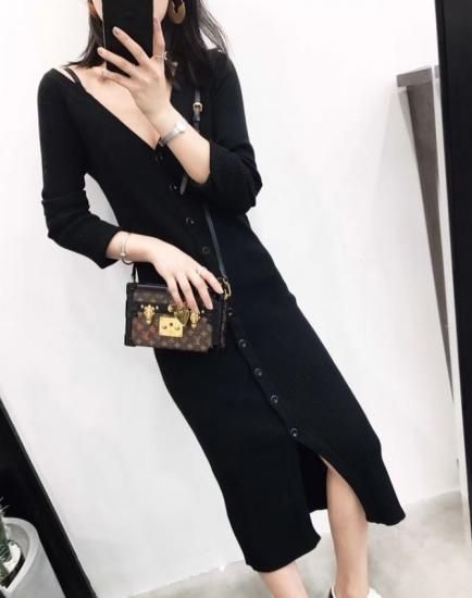 ニットワンピース ニットワンピ レディース Vネック スリムフィット リブニット ロング ワンピース ワンピ 暖か 秋冬新作 秋 秋色 秋服 秋sale 韓国 トレンド ニットワンピース ニットワンピ