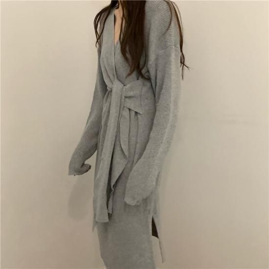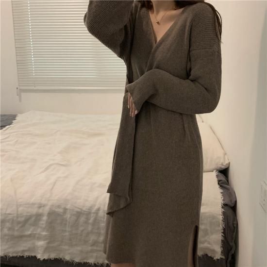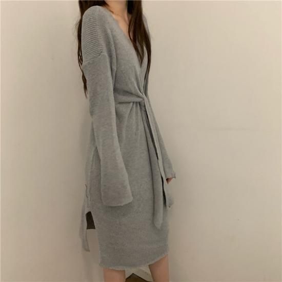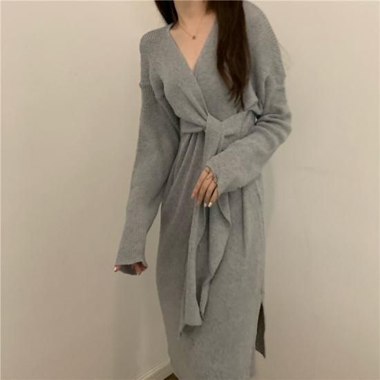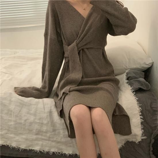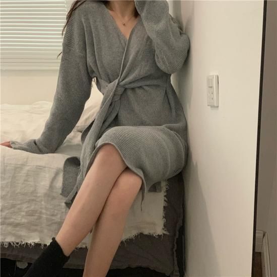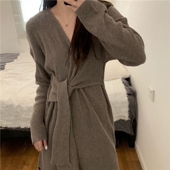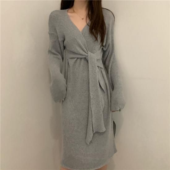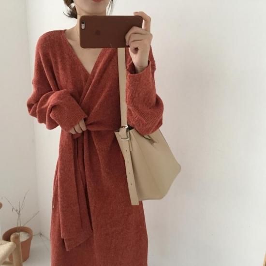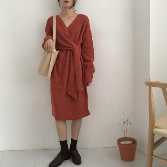 ニットワンピース ニットワンピ レディース カシュクール風 Vネック ミモレ丈 ニット ワンピース ワンピ 大きいサイズ ゆるカワ 秋冬新作 秋 秋色 秋服 秋sale ニットワンピース ニットワンピ