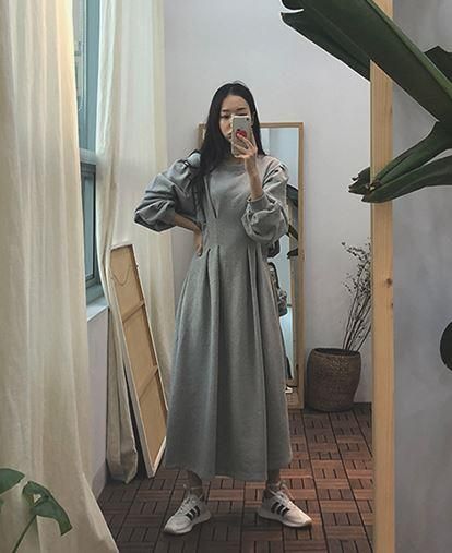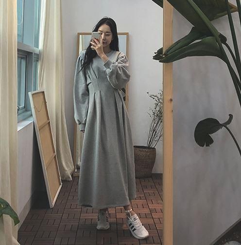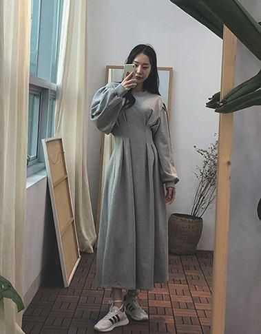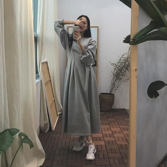 ロングワンピース ロングワンピ レディース スウェット タック ロング マキシ ワンピース ワンピ 大きいサイズ 可愛い 秋冬新作 秋 秋色 秋服 秋sale ゆったり ロングワンピース ロングワンピ