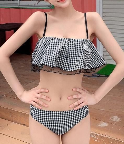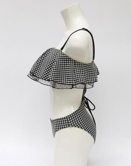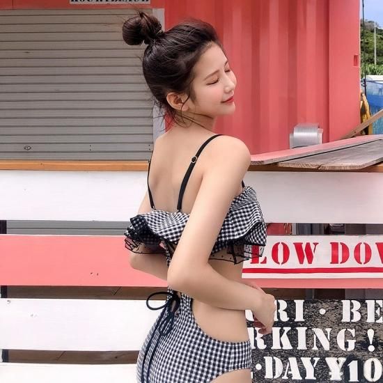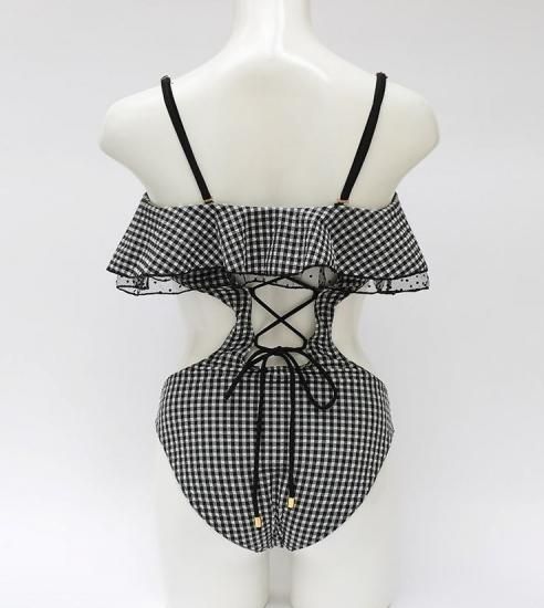 水着 タンキニ ビキニ ワンピース 体型カバー バック レースアップ チェック 水玉 フリル ワンピース水着 大きいサイズ ワンピース 水着 レディース 大人可愛い 夏 新作 水着 ビキニ ワンピース