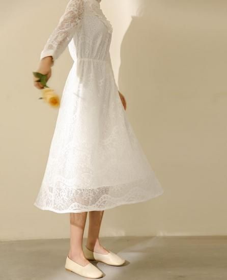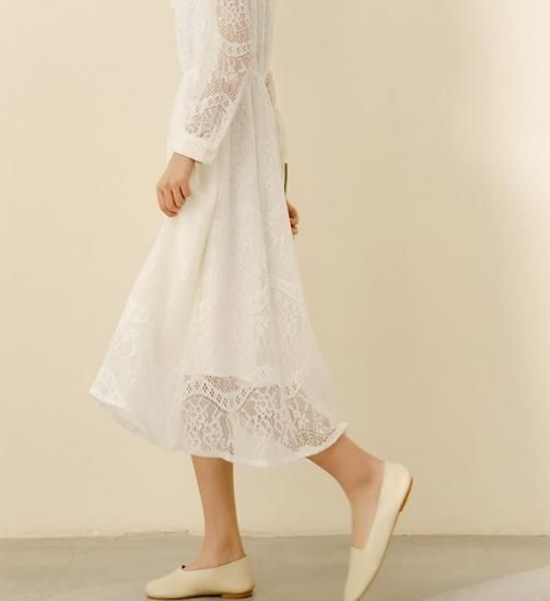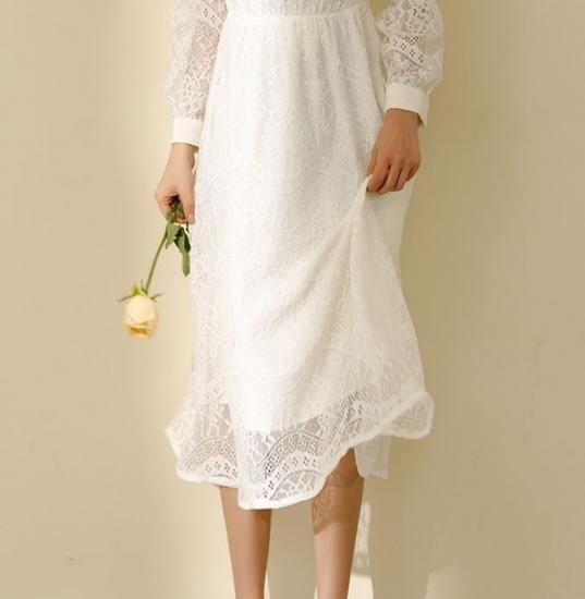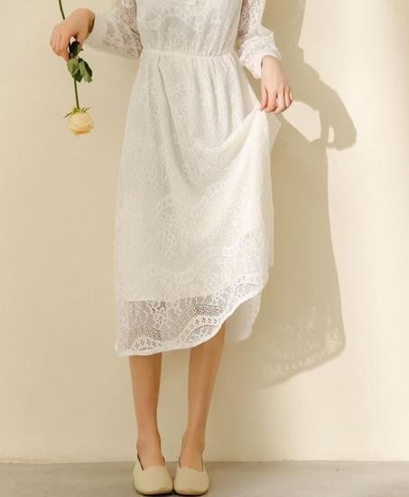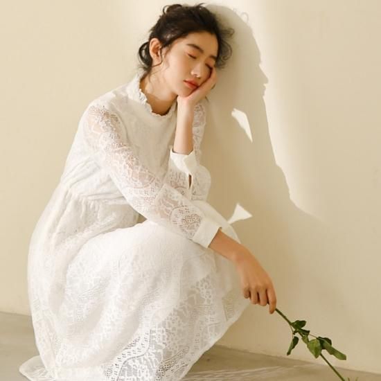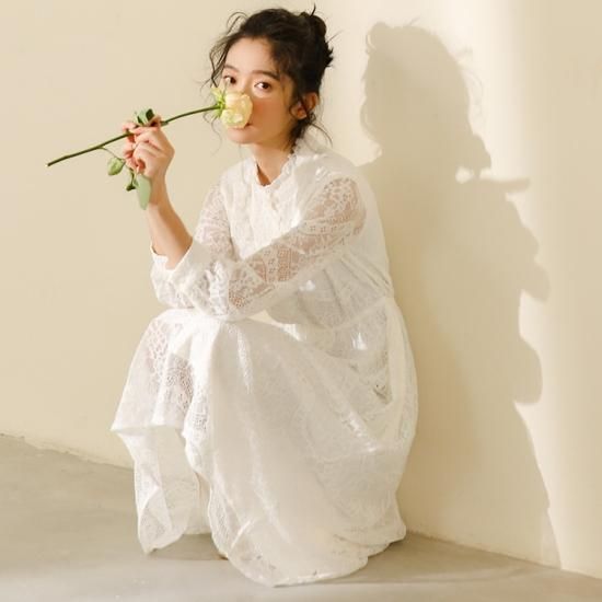 ワンピース ワンピ レディース エアリー レース スタンドカラー 長袖 ロング丈 ミモレ丈 レーシー ワンピース ワンピ 大きいサイズ 春新作 春 春色 春服 春sale ゆったり ワンピース ワンピ