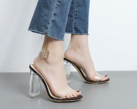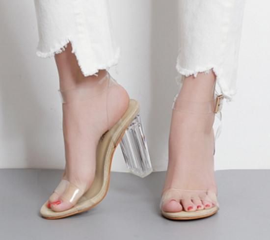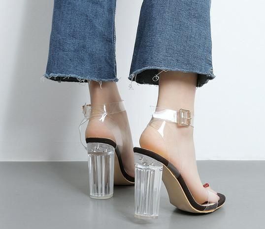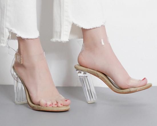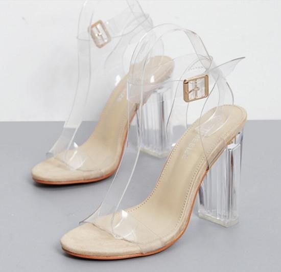 サンダル ハイヒール レディース シューズ 靴 クリア アンクル ストラップ チャンキーヒール サンダル 大きいサイズ 2カラー 可愛い 春新作 春 夏 春色 夏色 春夏sale サンダル ハイヒール