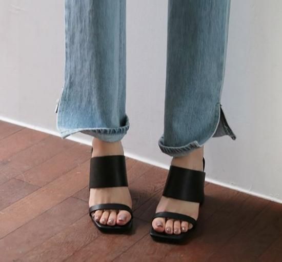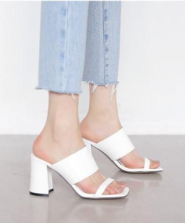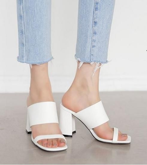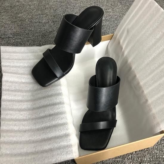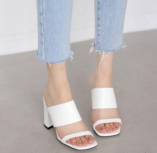 シューズ サンダル レディース 靴 シューズ おしゃれ ダブルベルト 太め チャンキーヒール サンダル ミュール ブラック ホワイト 2カラー 大きいサイズ 春 夏 新作 かわいい シューズ サンダル