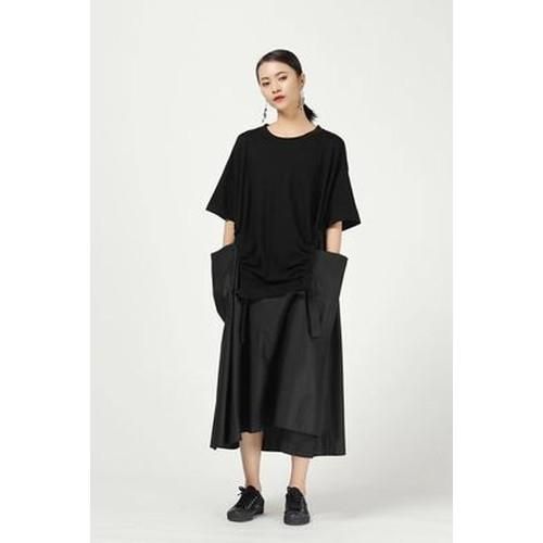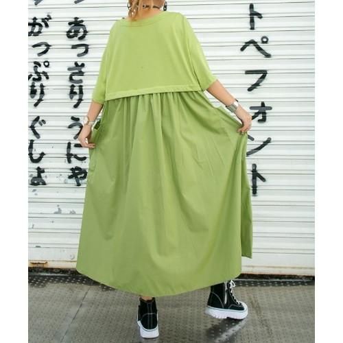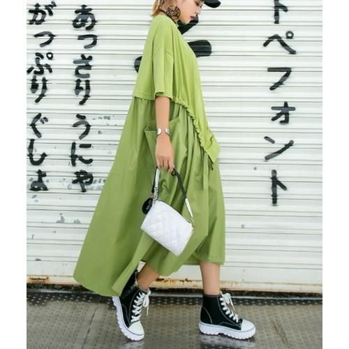 ロングワンピース 変形ワンピース レイヤードワンピース ワンピ レディース 夏 半袖ワンピース ビッグポケット 重ね着風 おしゃれ モード オーバーサイズ ゆったり ロングワンピース 変形ワンピース