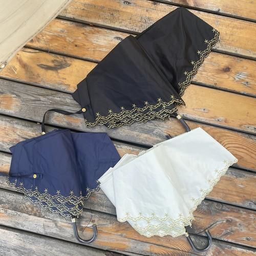 日傘 折りたたみ レディース 晴雨兼用 紫外線 コンパクト 使いやすい 防水生地 遮熱 0.9999 星柄 スカラップ 刺繍 日傘 折りたたみ レディース 晴雨兼用 紫外線 コンパクト