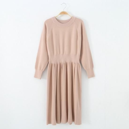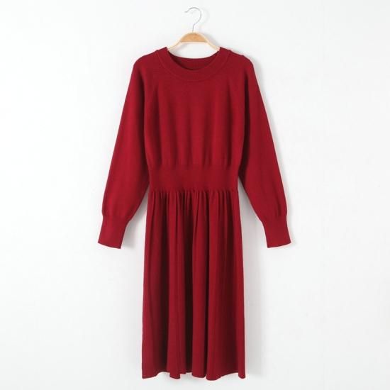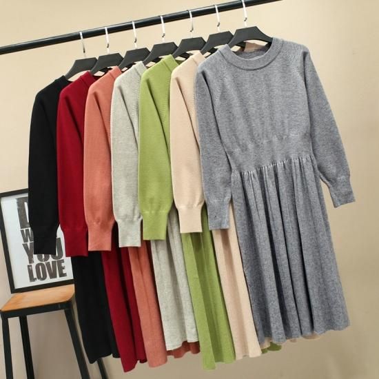 パフスリーブワンピ ニット カラフル 着痩せ 単色 シンプル オフィス 通勤 デート かわいい 大人っぽい あたたかい ゆったり やわらかい ワンサイズ 着痩せ 秋 冬 定番 きれい お姉さん