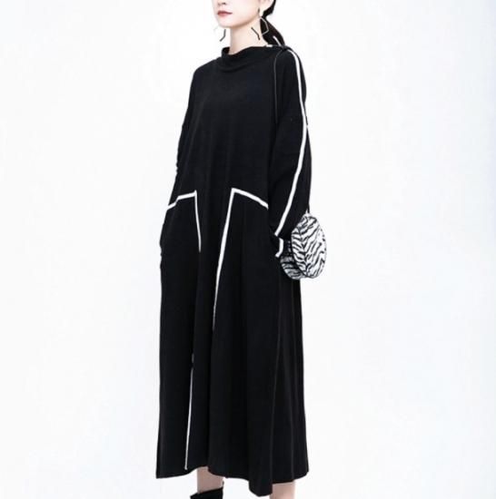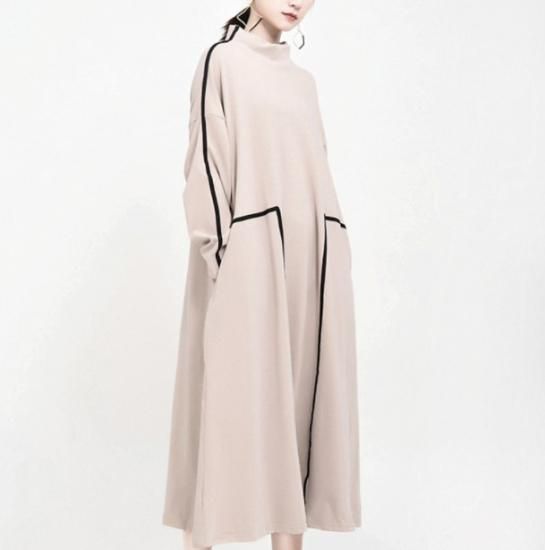 ワンピース ロングワンピース レディース 長袖 秋冬 Aライン ハイネック ロングワンピ バイカラー ゆったり ワンピース ロングワンピース レディース 長袖 秋冬 Aライン ハイネック ロングワンピ