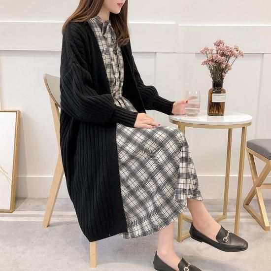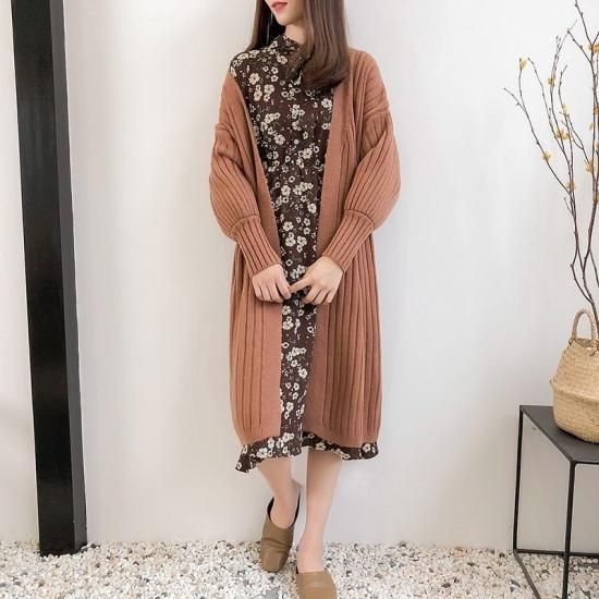 ニットカーディガン レディース 秋冬 秋 ロングニットカーディガン リブニット ロングニットカーディガン ゆったり 長袖 ミディアム ロング カーデ ロングカーデ リブ ボリューム袖