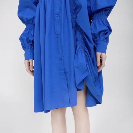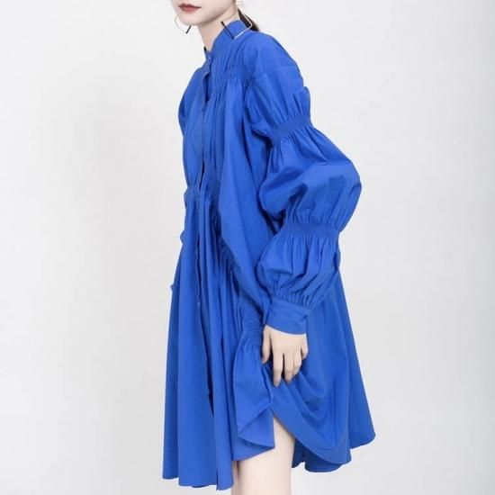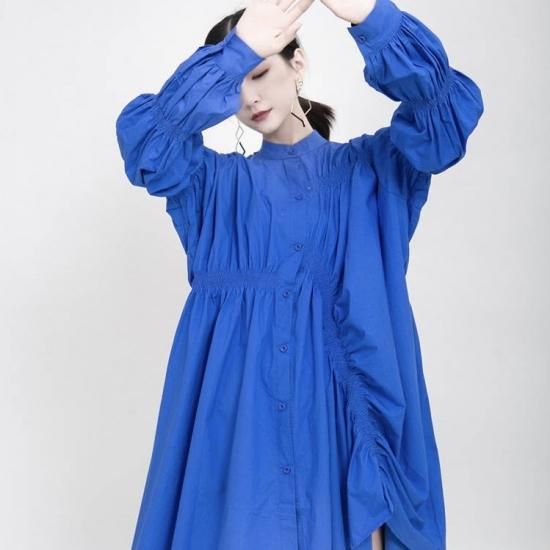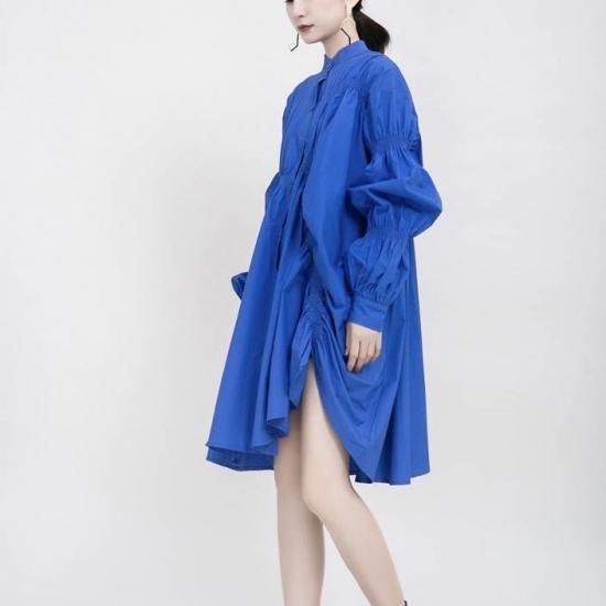 ワンピース レディース ひざ丈 長袖 ブルー 大人 大きいサイズ シャツ ふんわり ワンピース レディース ひざ丈 長袖 ブルー 大人 大きいサイズ シャツ ふんわり ボリューム シャツワンピ 無地