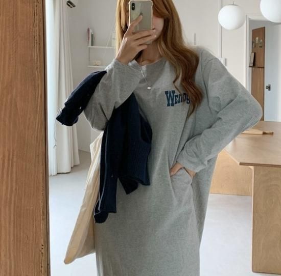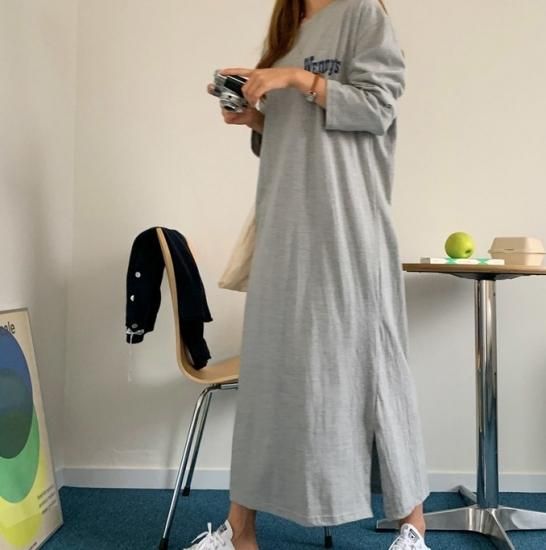 ワンピース ロングワンピース レディース 長袖 ロングワンピ ロゴ ワンマイルウェア ルームウェア 韓国 ワンピース ロングワンピース レディース 長袖 ロングワンピ ロゴ ワンマイルウェア 韓国