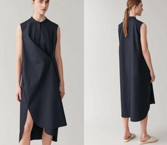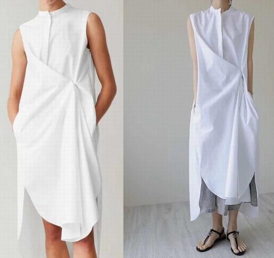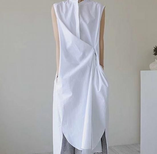 コットンシャツドレス ボトルネック ラウンドネック ワンピース ロング丈 重ね着 ノースリーブ 袖なし 着回し サイドボタン レイヤー かわいい おしゃれ フォーマル キレイ 清潔感 清楚