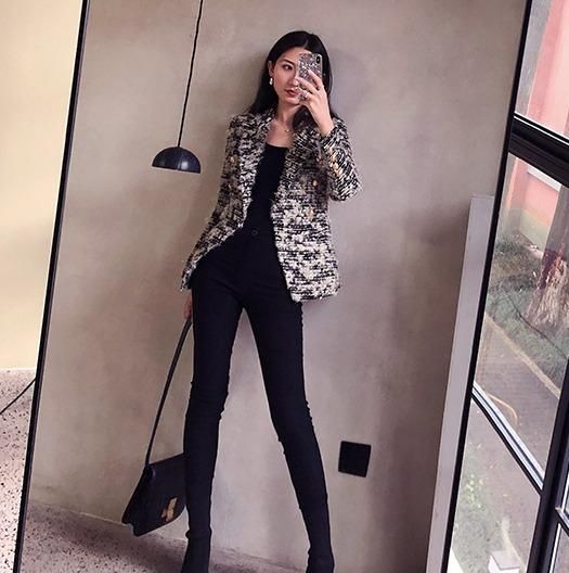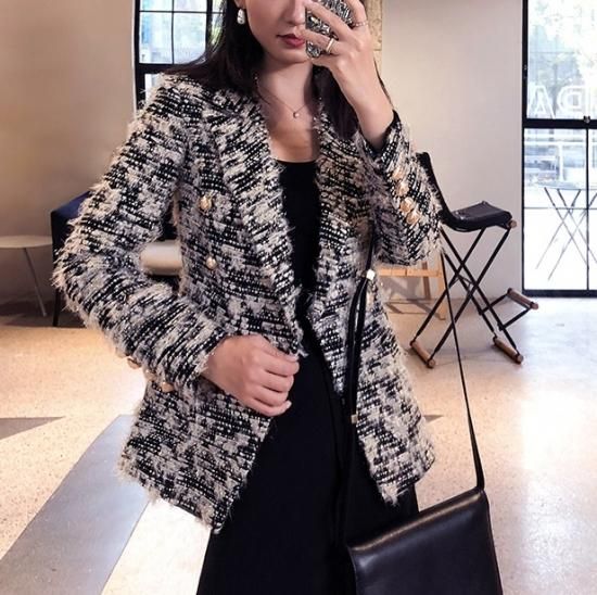 アウター ジャケット テーラードジャケット ツイード ゴールドボタン 体型カバー 秋冬 お洒落 韓国 アウター ジャケット テーラードジャケット ツイード ゴールドボタン 体型カバー 秋冬 お洒落