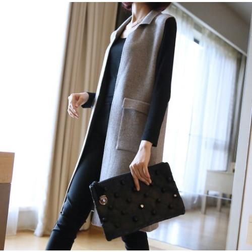 ニットベスト レディースベスト レディース ミドル丈 ノースリーブ セーター ニット カラー パッチポケット ベーシック 体型カバー ニットベスト レディースベスト レディース ミドル丈