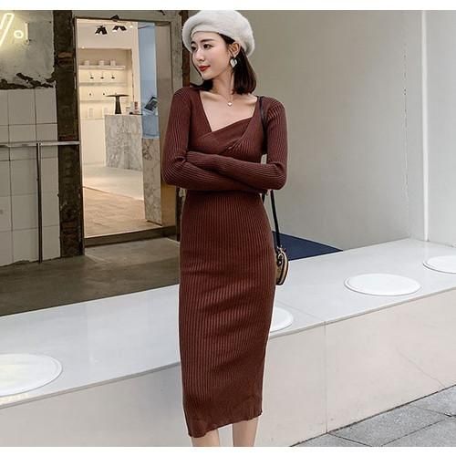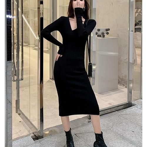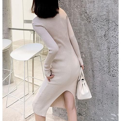 ワンピース ロングワンピース レディース レディースワンピース イレギュラーネック スリム タイト セクシー シンプル バックスリット ベーシック ワンピース ロングワンピース レディース