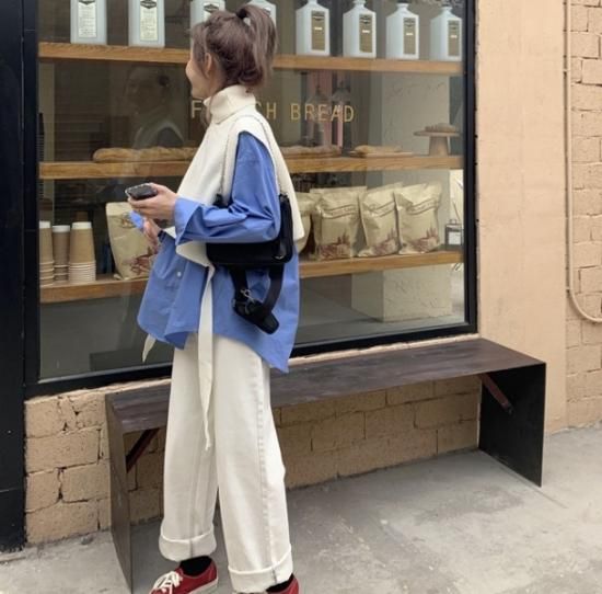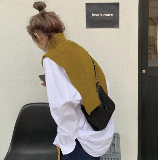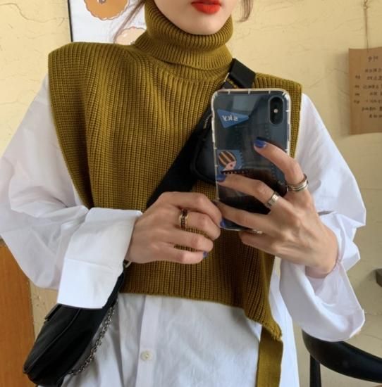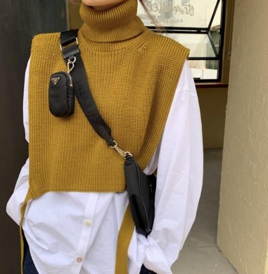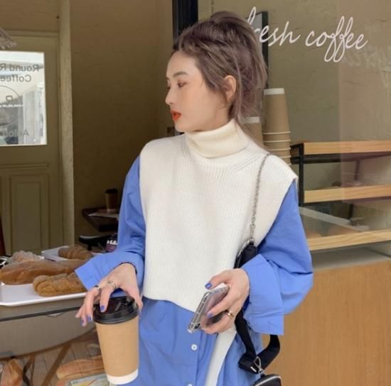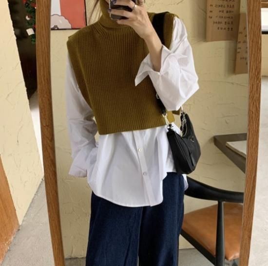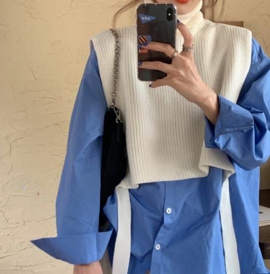 ニットベスト シャツ ロングシャツ ハイネック ベスト ニット レイヤード 重ね着 トレンド 無地 シンプル 秋冬 冬服 冬スペシャルセール ニットベスト シャツ ロングシャツ ハイネック ベスト