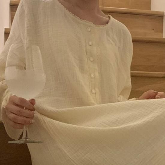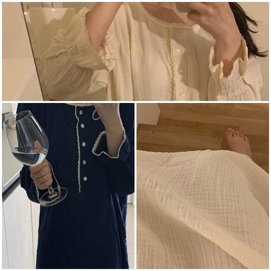ルームウェア パジャマ ワンピース ロング丈 長袖 ルームウェア フリル レース 春夏 部屋着 韓国 ファッション ルームウェア パジャマ ワンピース ロング丈 長袖 ルームウェア フリル レース
