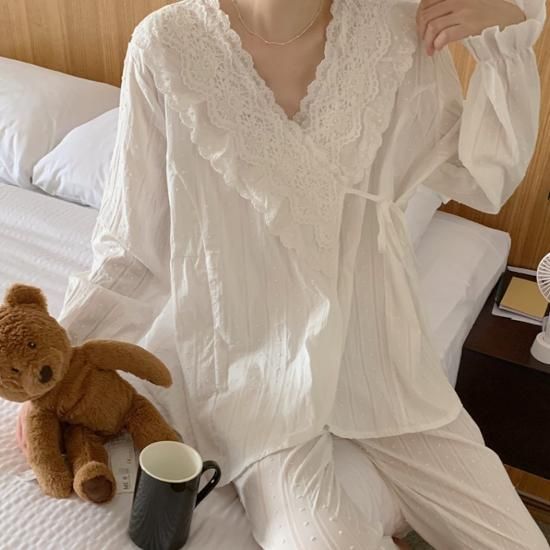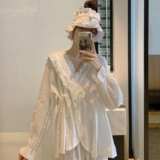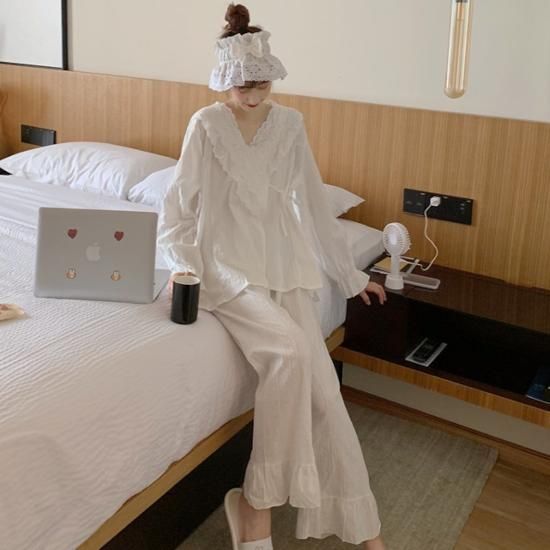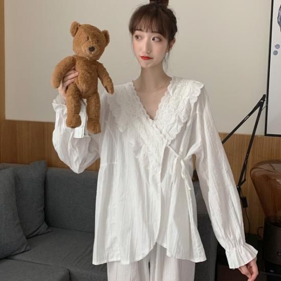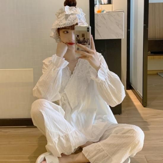 ルームウェア パジャマ 3点セット セットアップ レース フリル ヘアバンド ルームウェア 韓国 ファッション おしゃれ ルームウェア パジャマ 3点セット セットアップ レース フリル ヘアバンド