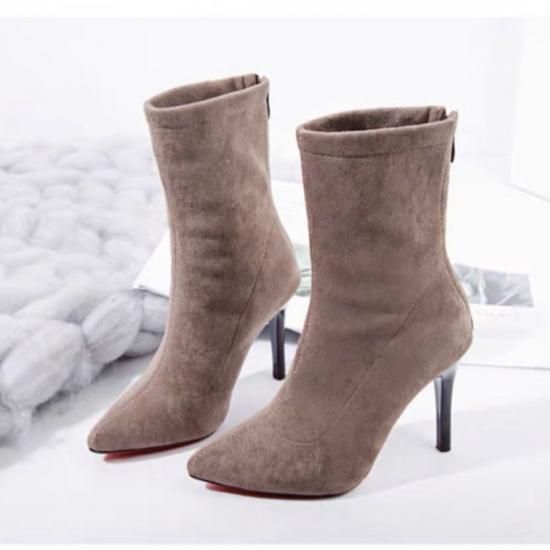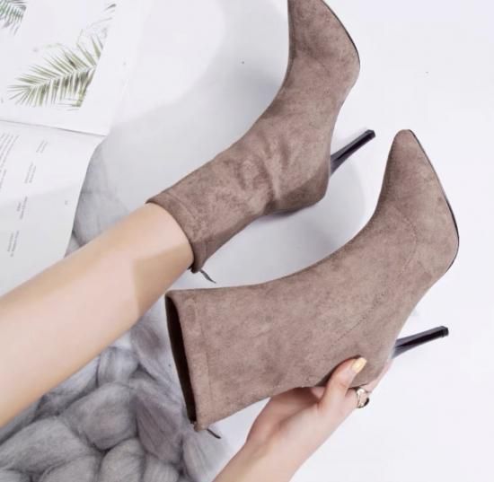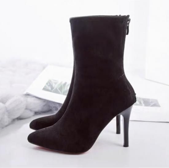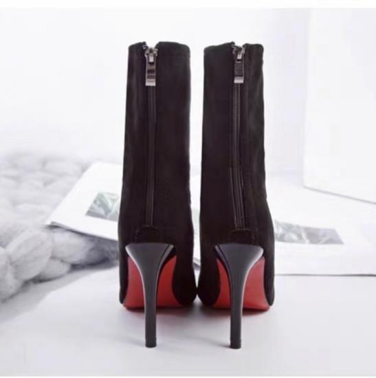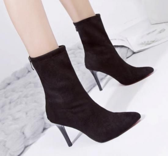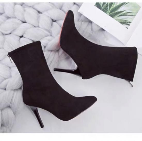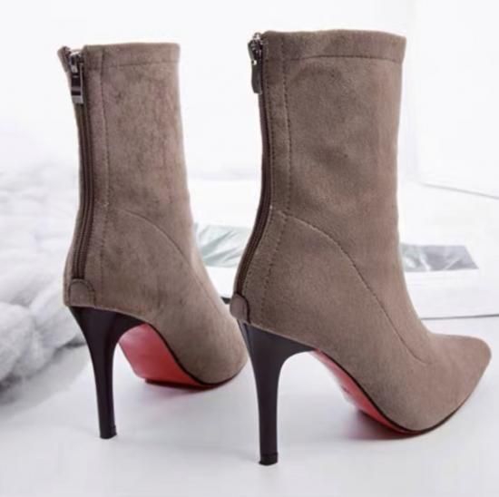 ショートブーツ レディース ショート ブーツ 大きいサイズ ブーティ スエード調 ポインテッドトゥ ハイヒール ピンヒール セクシー カラーソール 美脚 セクシー 秋新作 冬 パーティ カジュアル