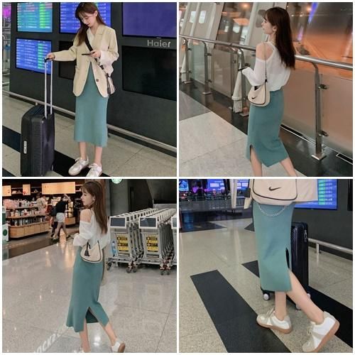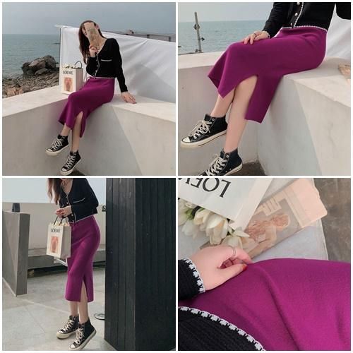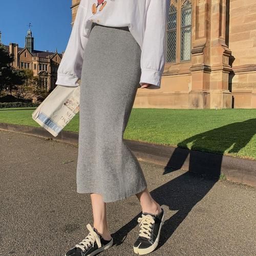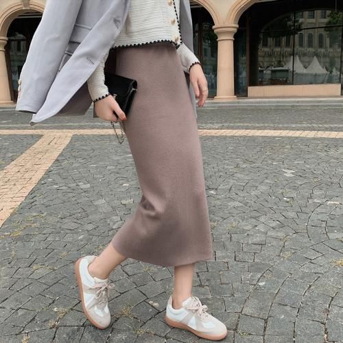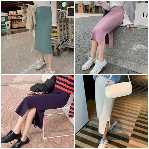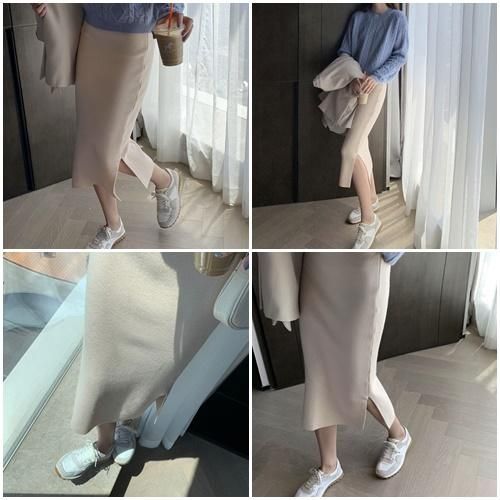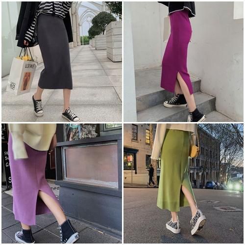 スカート ミモレ丈 ニット スリット シンプル 秋 冬 カジュアル エレガント 韓国 ファッション ニットスカート スカート ミモレ丈 ニット スリット シンプル 秋 冬 カジュアル エレガント 韓国