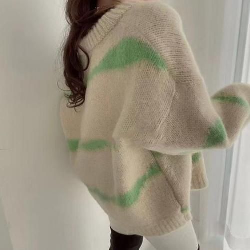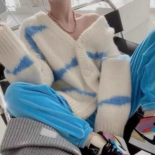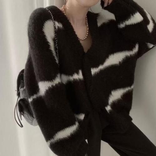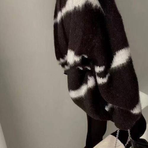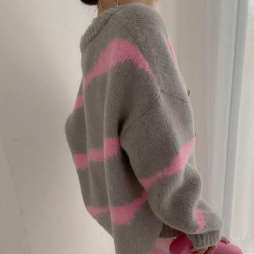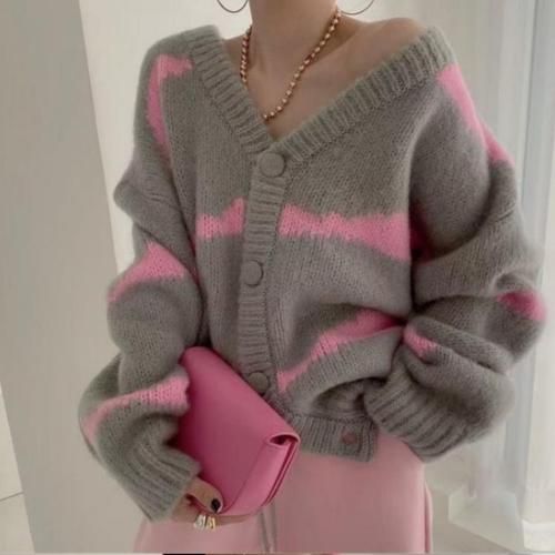 カーディガン レディース ニット オーバーサイズ 配色 ライン 秋 冬 体型カバー 大きいサイズ 韓国 ファッション カジュアル カーディガン レディース ニット オーバーサイズ 配色 ライン 秋 冬