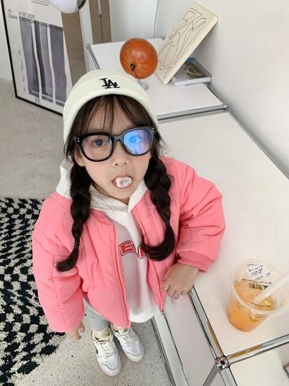 ジャケット ショートコート コート アウター ガールズ 子供用 女の子 ピンク 可愛い フロントジッパー ラウンドネック 暖かい おしゃれ 通学 保育園 小学校 秋冬 新作 ポケット 防風 カジュアル