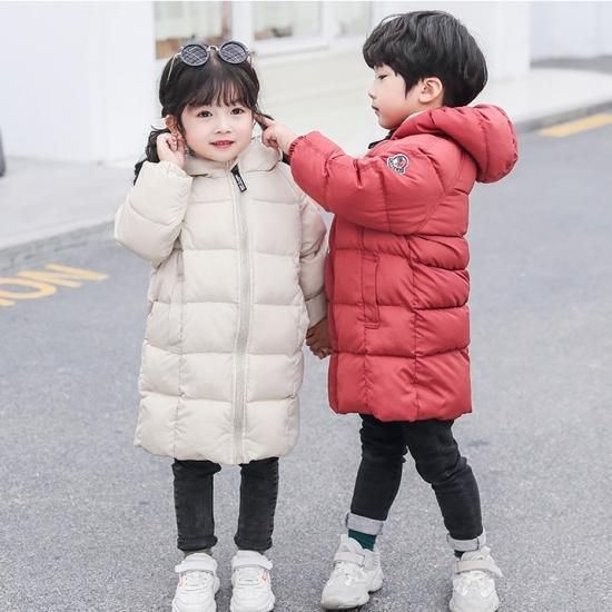 ダウンジャケット ダウンコート ダウン コート ジャケット 男の子 女の子 男女兼用 秋冬 新作 カラバリ 8色 フロントジッパー ミドル丈 フード付き ワンポイントマーク ポケット カラバリ豊富