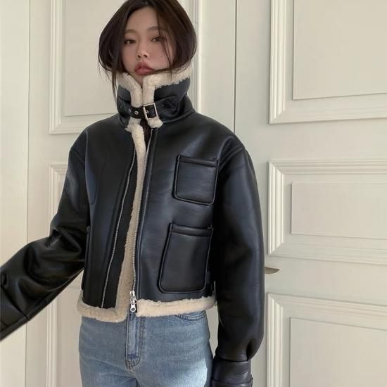 ムートンジャケット ムートンコート レディース アウター ボアコート 大きいサイズ ライダース 冬服 もこもこ ショート 裏起毛 トレンド ボアジャケットフェイクレザー フェイクムートンコート