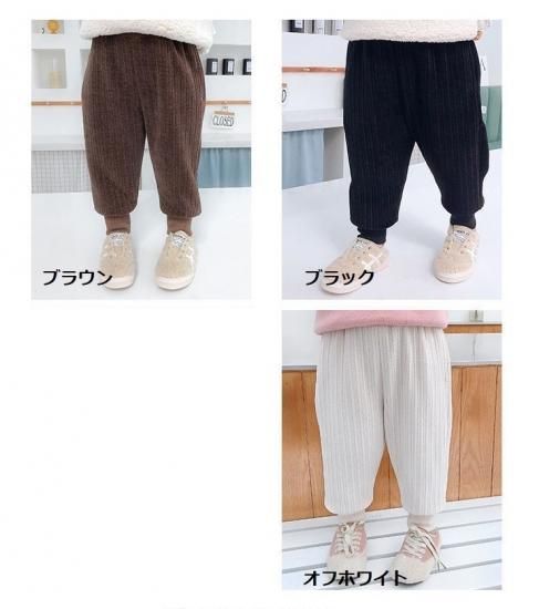 ボトムス ガールズ ボーイズ 子供用 男女兼用 キッズパンツ カラバリ3色 ブラック オフホワイト ブラウン サイズ6展開 80-130 カジュアルパンツ リブデザイン 可愛い デイリー 日常