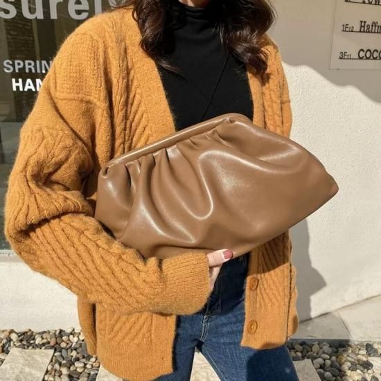クラッチバッグ レディース 大きめサイズ 大容量 カジュアル 2way ショルダーバッグ 肩掛け 斜めがけバッグ 大人 シンプル おしゃれ トレンド 韓国風 しわ加工 がまぐち かわいい