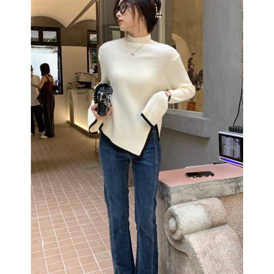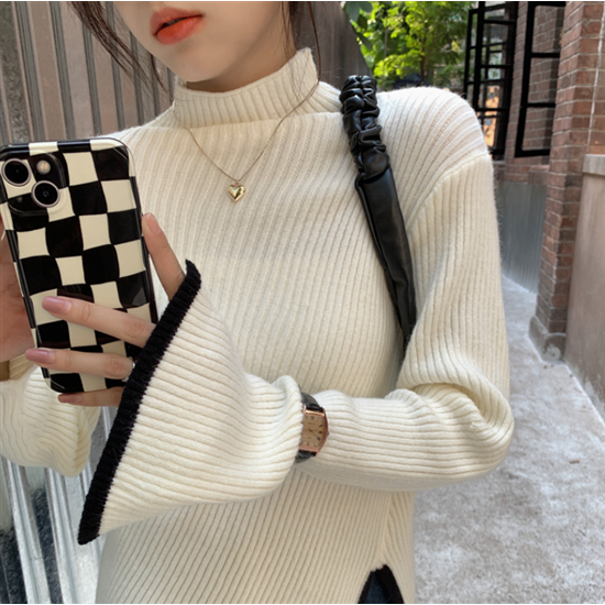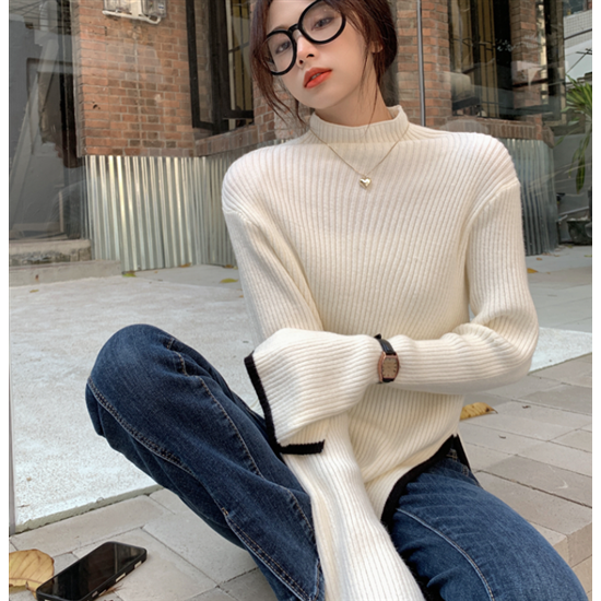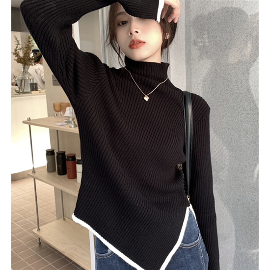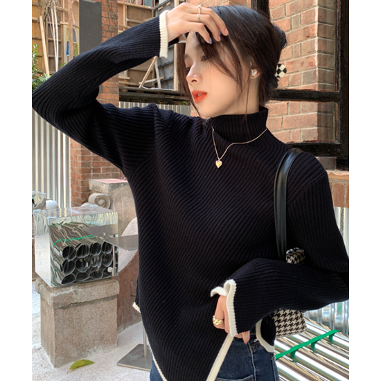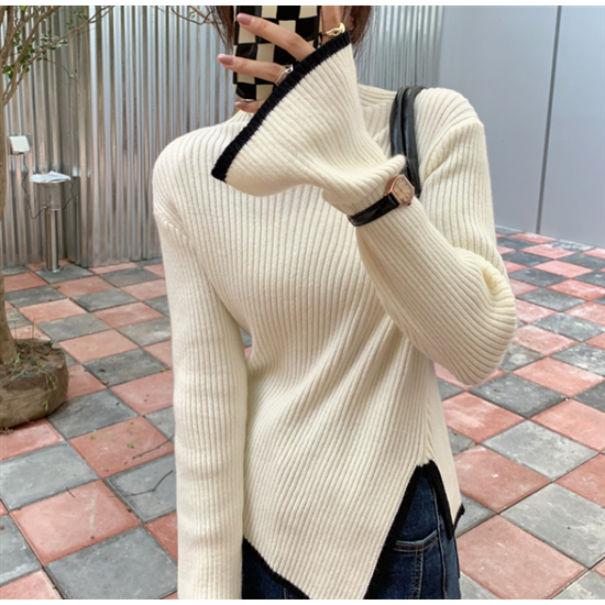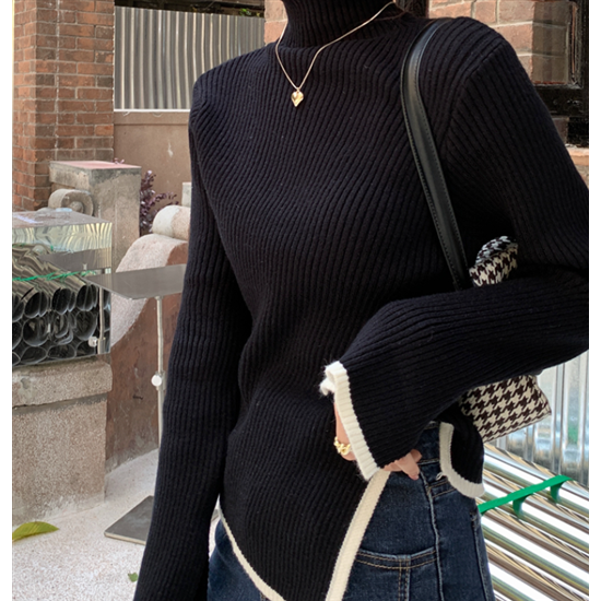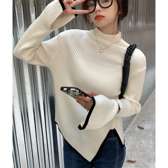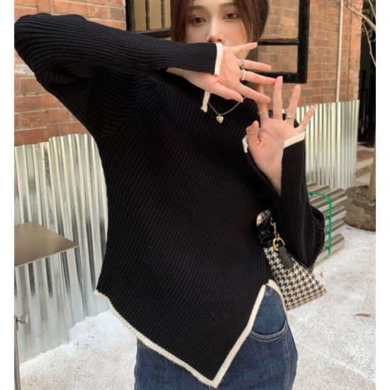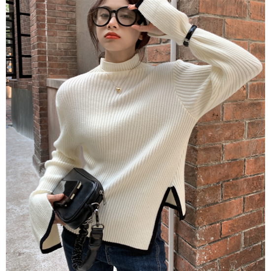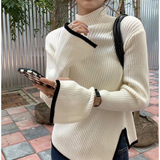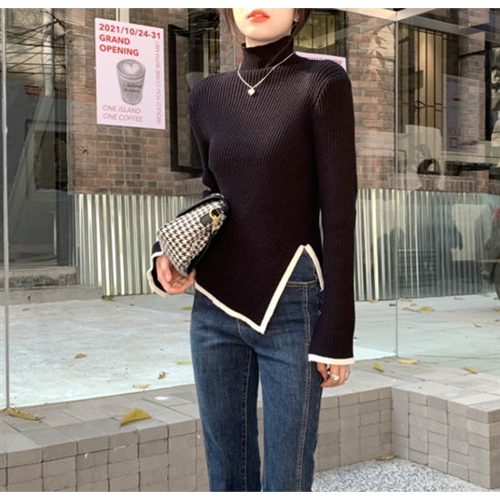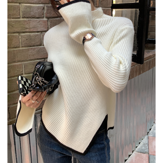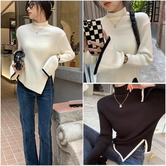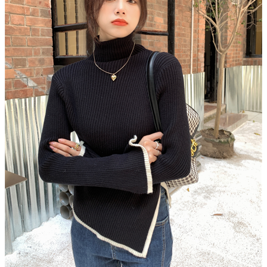 タートルネック ハイネック レディース 大きいサイズ ボリューム袖 アシンメトリー リブ編み ニット リブニット トップス 長袖 レディーストップス 体型カバー 通勤 おしゃれ 無地 セーター 着回し