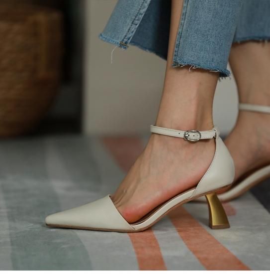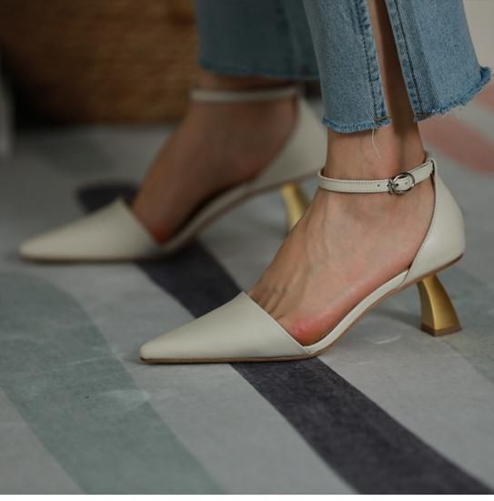 パンプス レディース カラバリ2色 ブラック オフホワイト 太めヒール ポインテッドトゥ エレガントスタイル 春夏 秋冬 オールシーズン 新作 おしゃれ ハイセンス サイズ8展開21.5-25cm