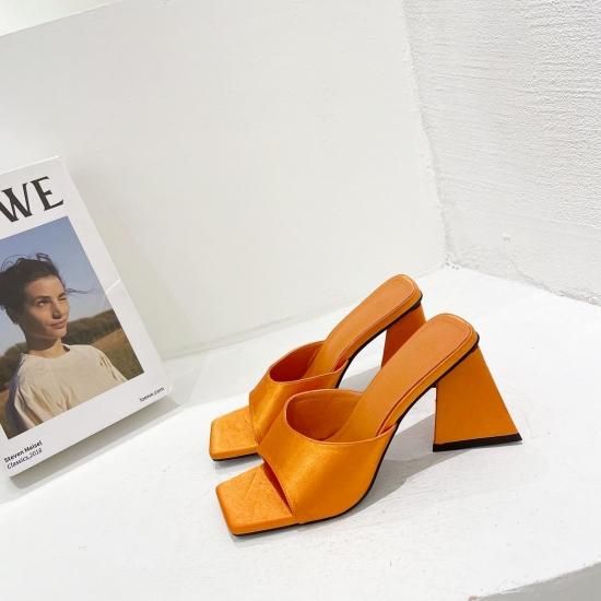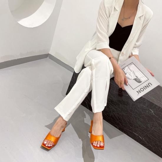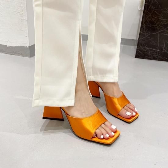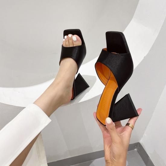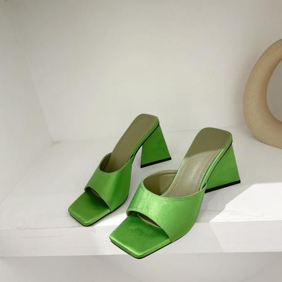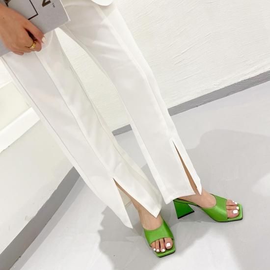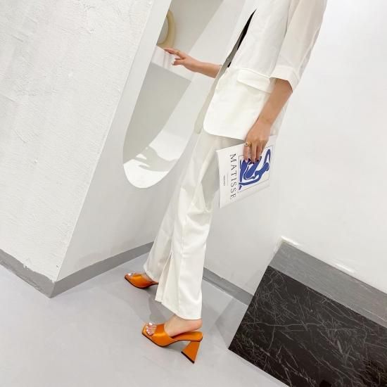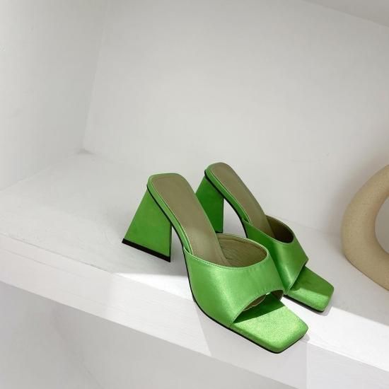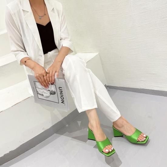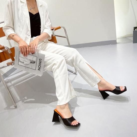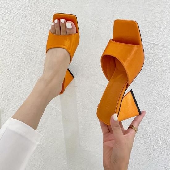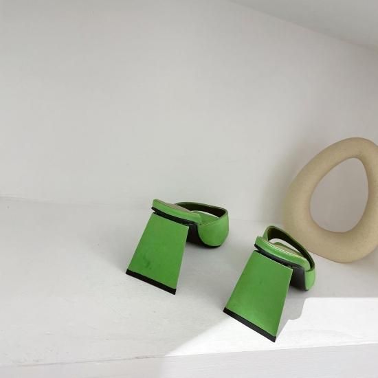 サンダル レディース カラバリ3色 グリーン オレンジ ブラック ミュール ユニークヒール ハイヒール オープントゥ 春夏 新作 エレガントスタイル レザーサンダル サイズ6展開22.5-25cm