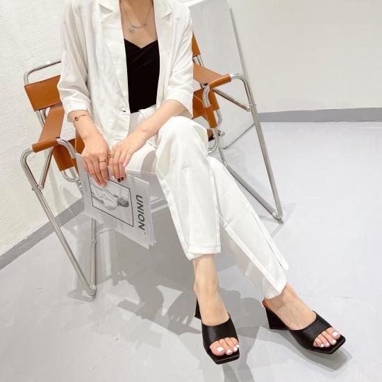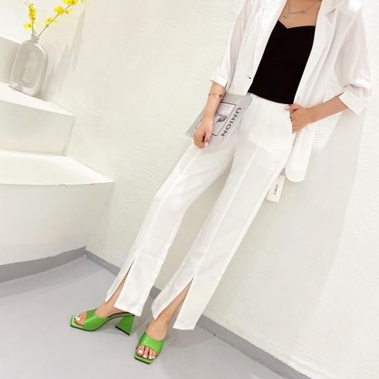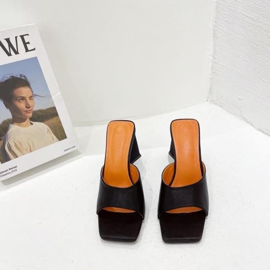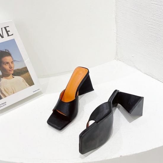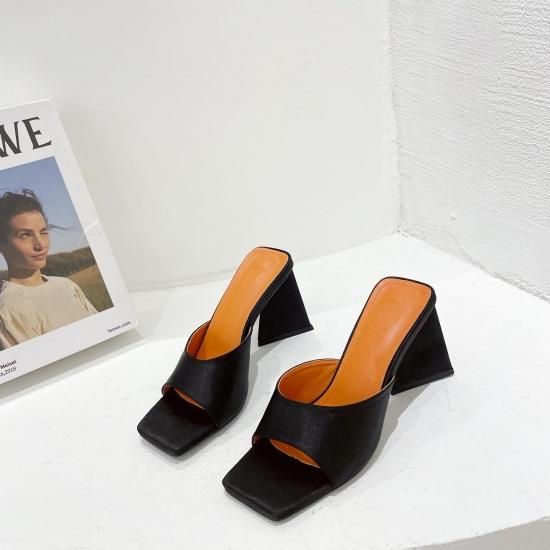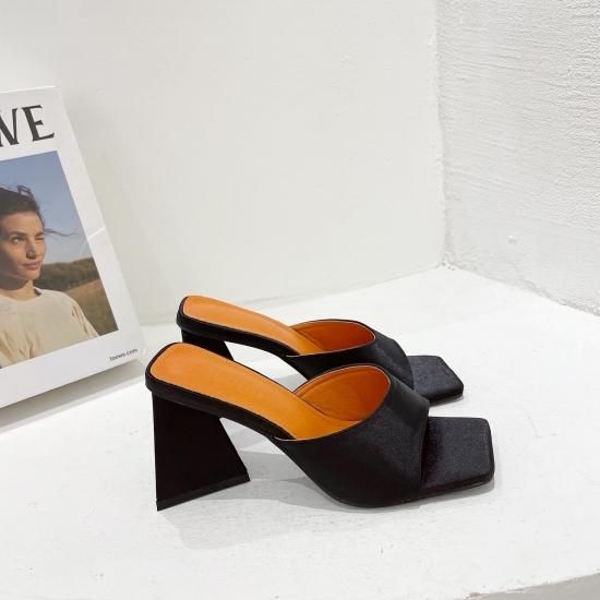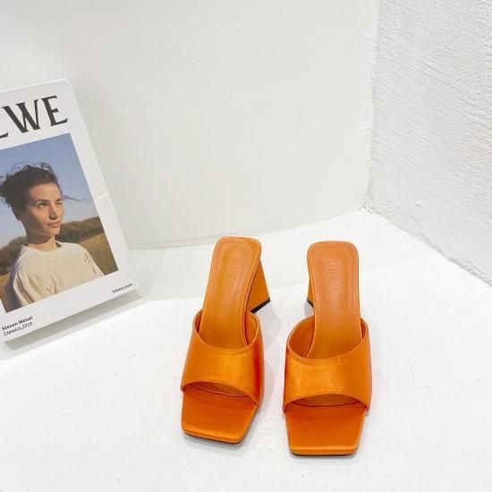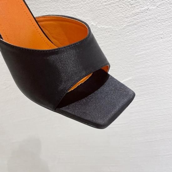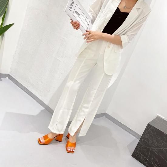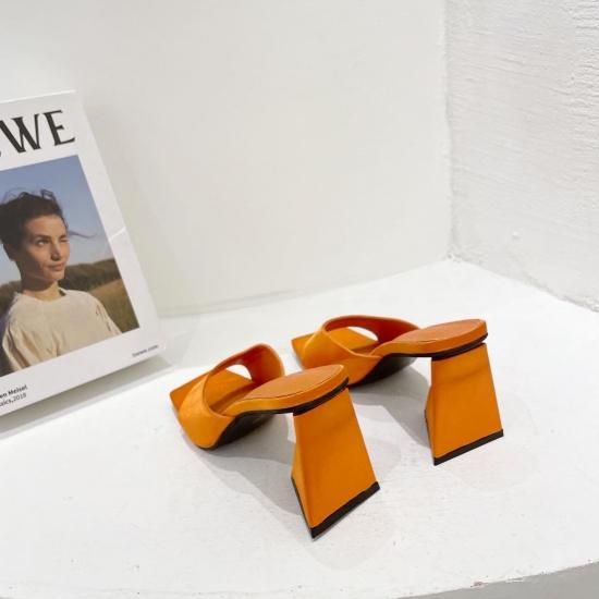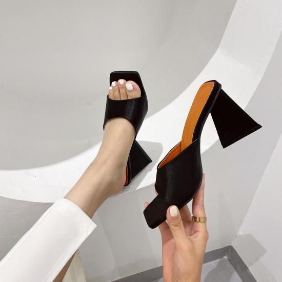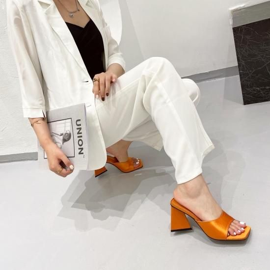 サンダル レディース カラバリ3色 グリーン オレンジ ブラック ミュール ユニークヒール ハイヒール オープントゥ 春夏 新作 エレガントスタイル レザーサンダル サイズ6展開22.5-25cm