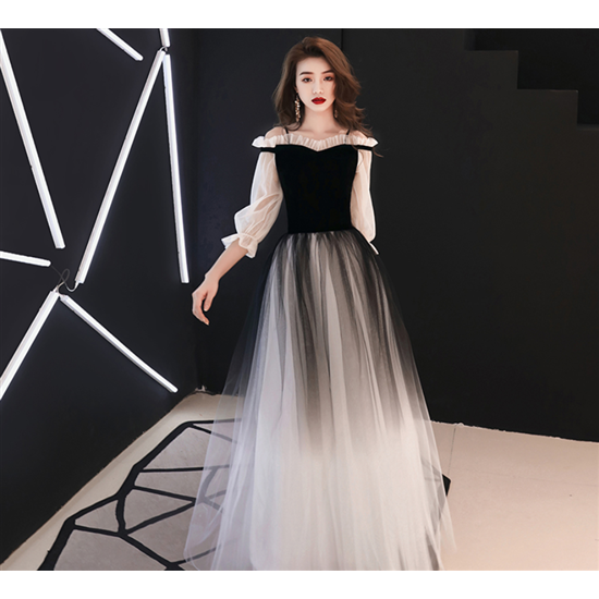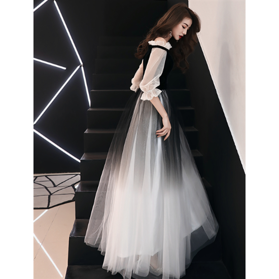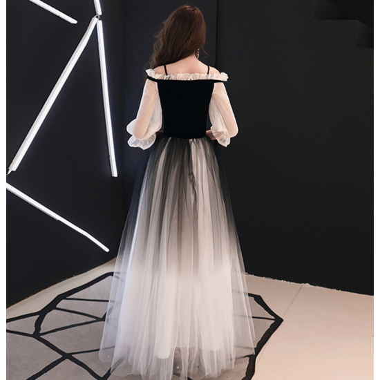 演奏会ドレス ロングドレス 大きいサイズ スリング メッシュドレス ロングスカート エレガント 個性的 チュチュスカート 七分袖 長袖 グラデーション お呼ばれ 結婚式 演奏会ドレス ロングドレス