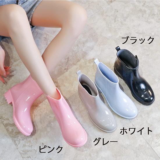 レインブーツ ショート ショートブーツ レインシューズ レディース 長靴 23.0〜25.0cm 雨具 グレー ホワイト ピンク ブラック 防水 滑り止め おしゃれ レイン レインブーツ