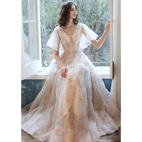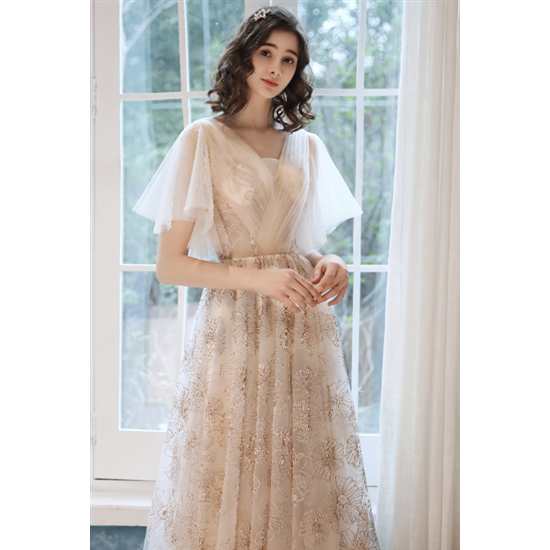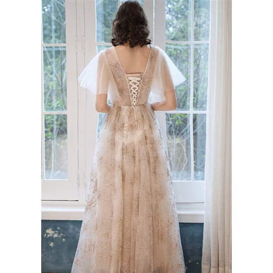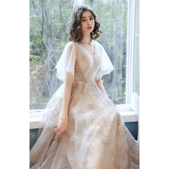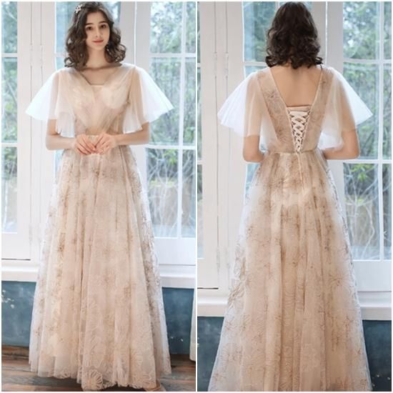 演奏会ドレス ロングドレス 大きいサイズ 2XL 3XL 小さいサイズ 半袖 体型カバー Vネック ロングスカート お呼ばれ フォーマル フェミニン メイドドレス Aラインスカート 演奏会ドレス