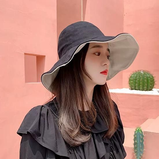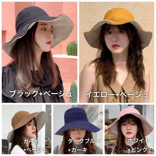帽子 つば広 リバーシブル バイカラー バケットハット バケハ 無地 カジュアル UVカット 日差しよけ レディース 無地 新作 シンプル 清楚 ビーチ サンシェード 夏 ビッグエッジ サンハット