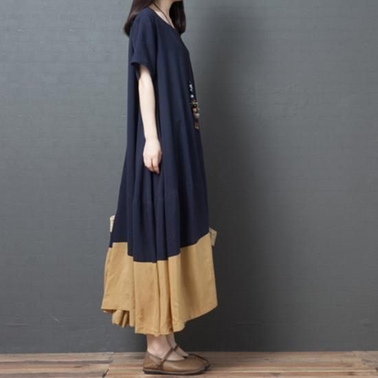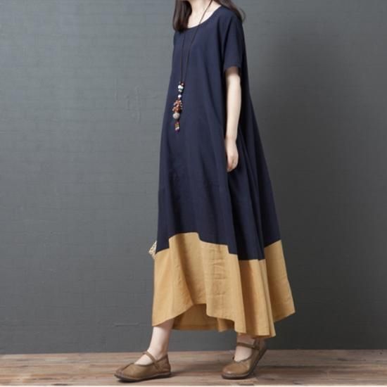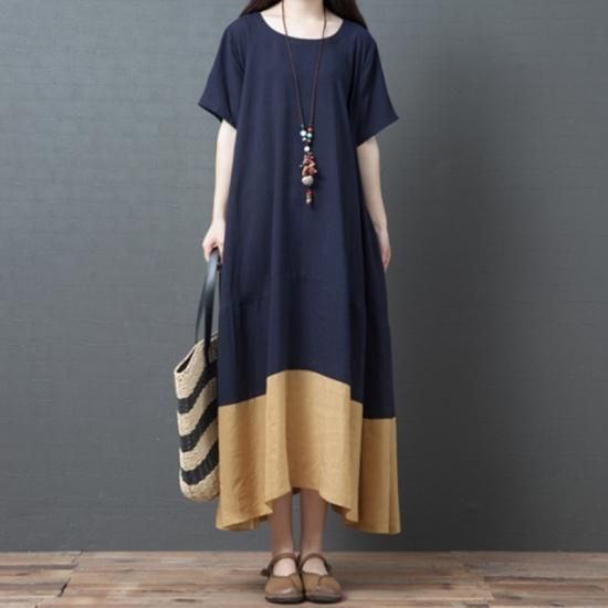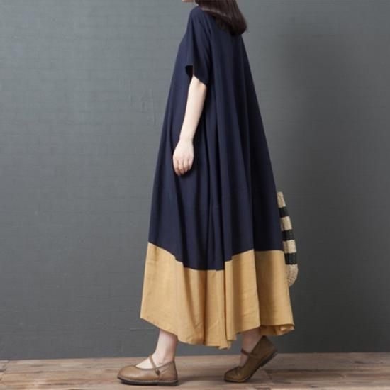 ワンピース ゆったり ロング Aライン フレア レディース きりかえワンピース バイカラー ツートン 夏 ワンピース ゆったり ロング Aライン フレア レディース きりかえワンピース バイカラー