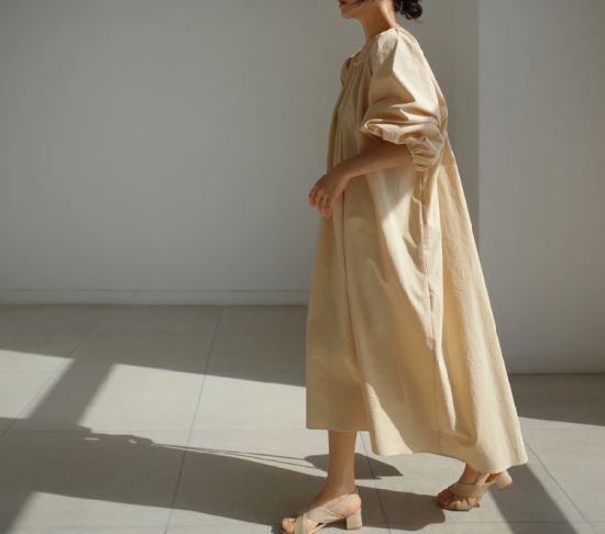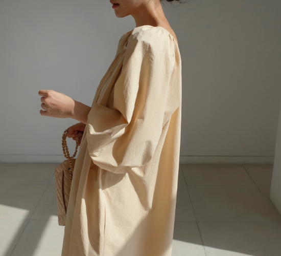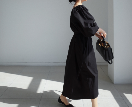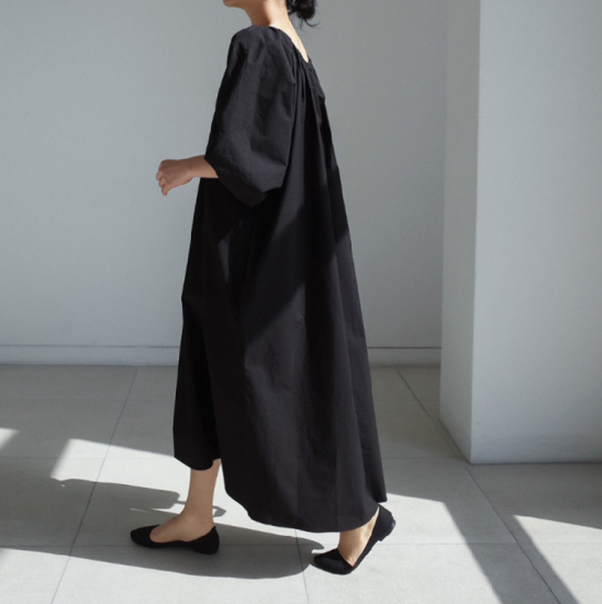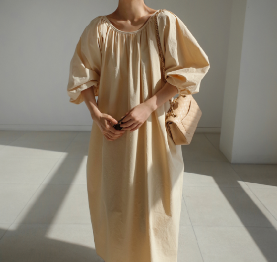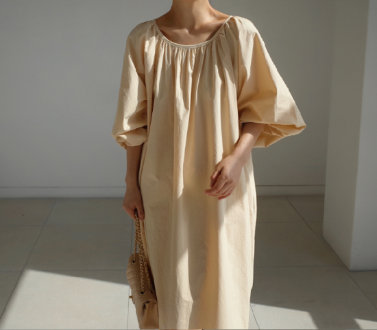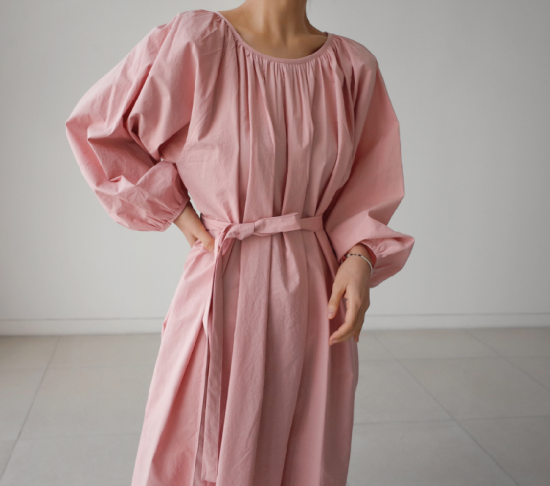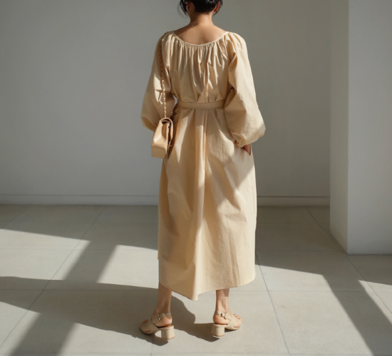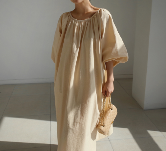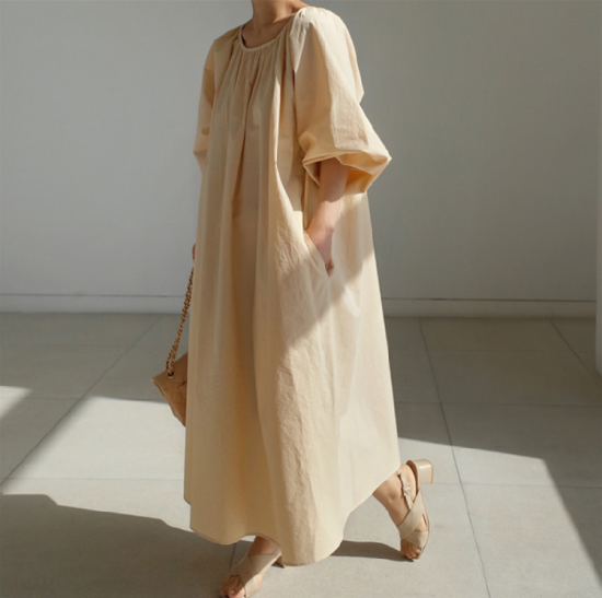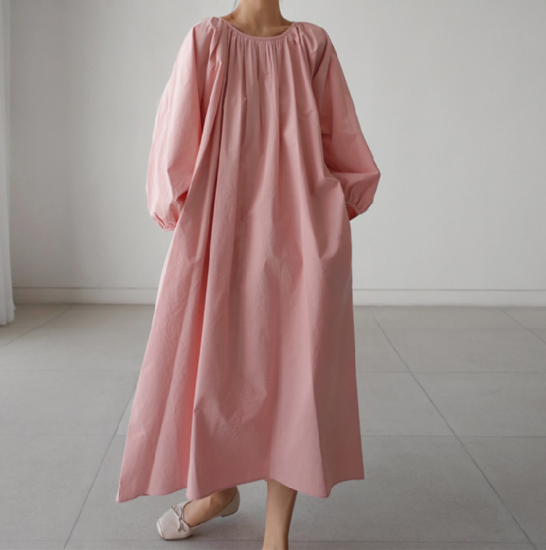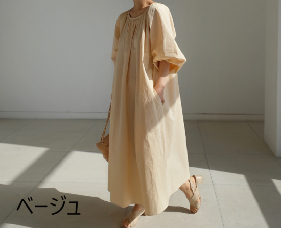 ワンピース レディース 大きいサイズ ゆったり 大き目 ロング丈 ロング丈ワンピース 無地 シンプル 上品 ギャザー ウエストリボン Aライン フレアシルエット ボリューム袖 ランタン袖 パフスリーブ