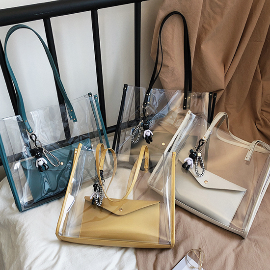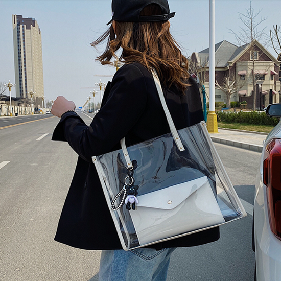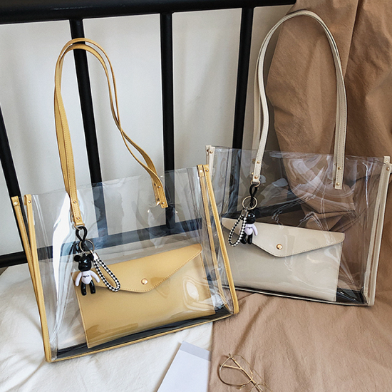 トートバッグ レディース 大容量 大小セット 2点セット ポーチ クラッチバッグ トートバッグ クリア かわいい おしゃれ トートバッグ レディース クリア 大容量 大小セット 2点セット ポーチ