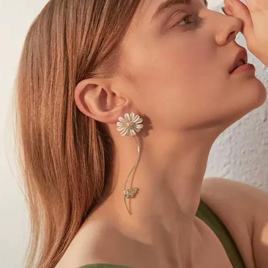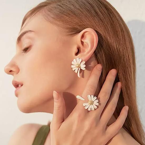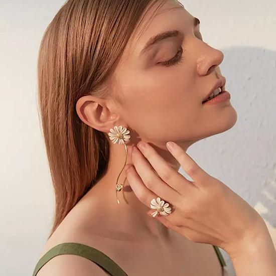 ピアス フラワーデザイン アシンメトリー デイジー ファッション小物 レディース アクセント 上品 シンプル 人気 大人上品 金属アレルギー 小さめ こなれ感 レディースアクセサリー